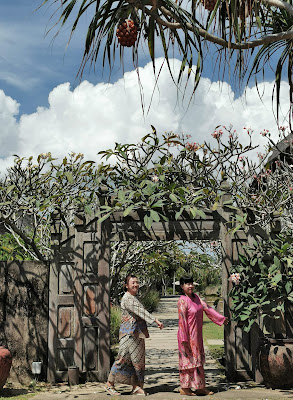 這次特地穿年初在亞羅士打Pekan Rabu買了尚未開張的桃紅色馬來服。